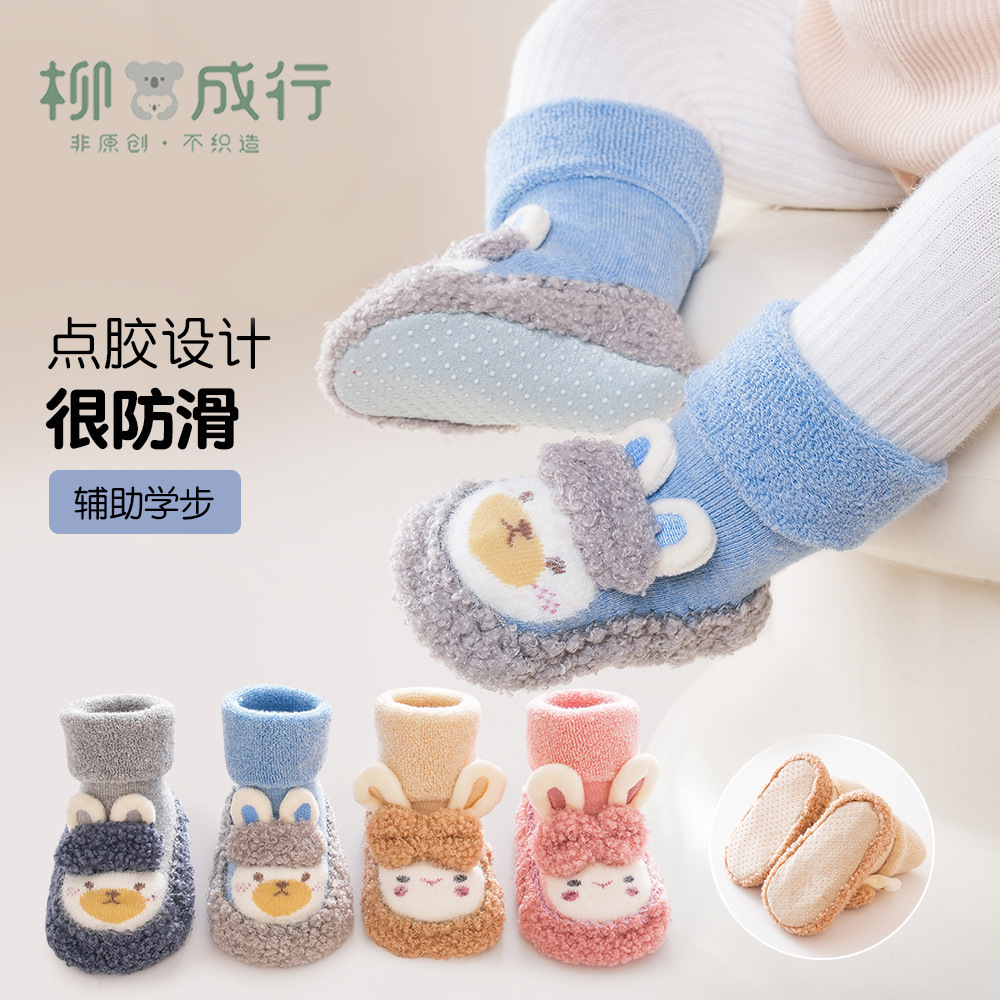 柳成行冬の赤ちゃんの靴の柔らかい底の漫画の子供の点のゴムの滑り止めの赤ちゃんの床の靴の靴下の卸売り