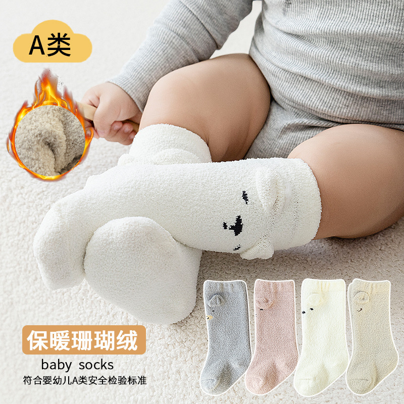 サンゴの赤ちゃんの靴下は秋冬に厚い保温漫画の熊の赤ちゃんの床の靴下A類の新生児のストッキングです。