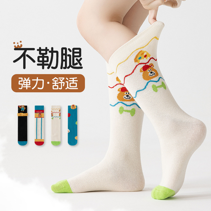 骨のない子供の靴下2023秋冬の新型の中筒の男女の子供の綿の靴下の熊の小さい中の大きい子供の潮のスポーツの靴下