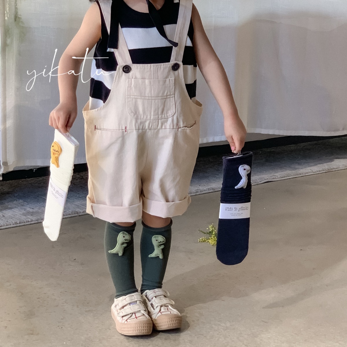 Yikatuイカウサギの子供の靴下の卸売り2024春夏の新型の巻き取りの小さい恐竜の人形は平均サイズがありません。