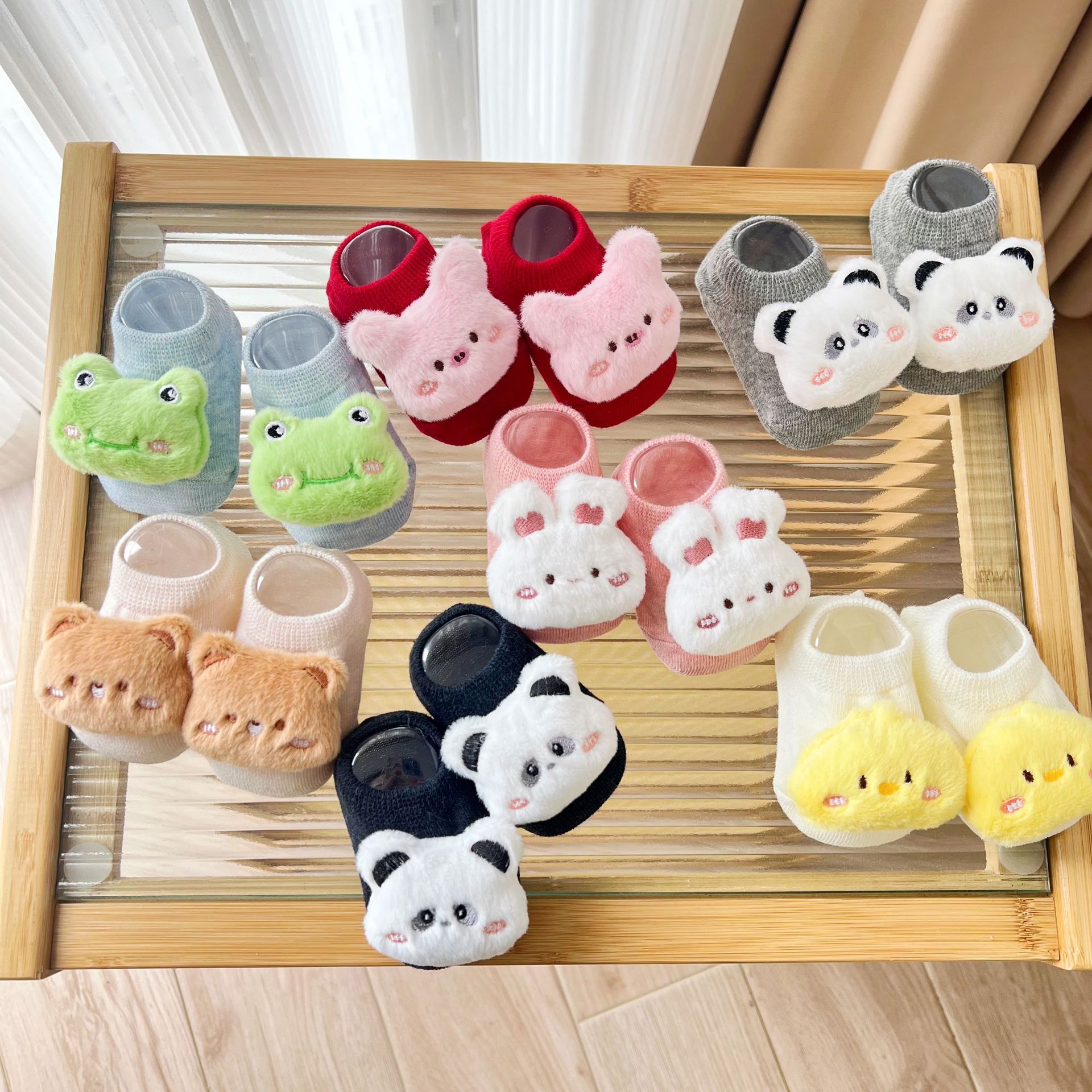 24 春夏ベビーソックス漫画動物滑り止め幼児新生児フロアソックス立体人形子供靴下