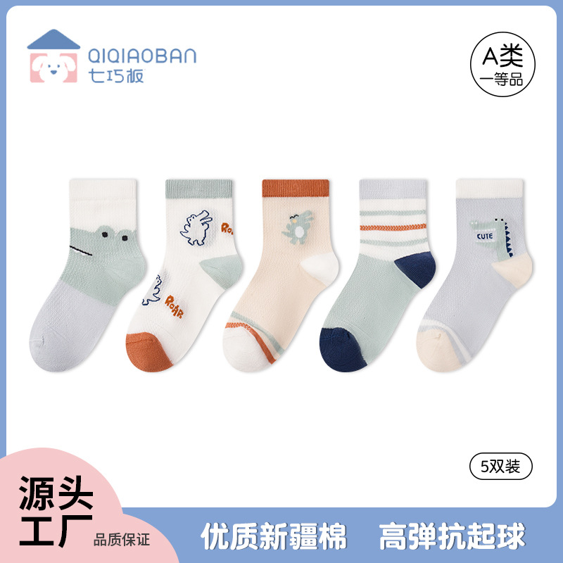 タングラム子供靴下夏薄い中型および大型子供綿靴下漫画薄い綿通気性男の子靴下メッシュ靴下
