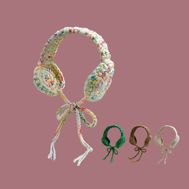 日本の森系カラー豆のニットは耳カバーをつけて保温します。