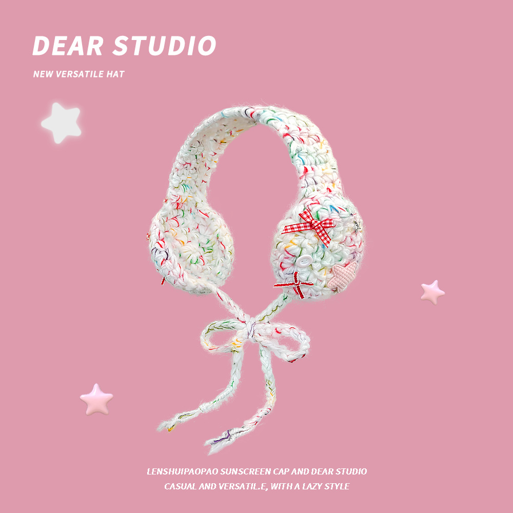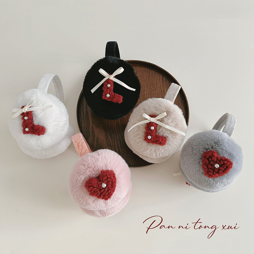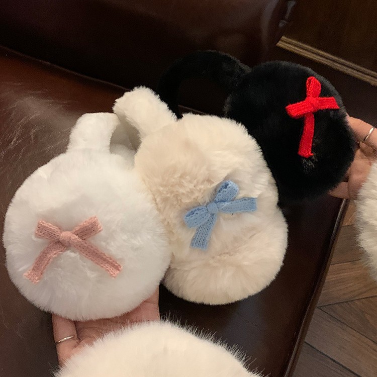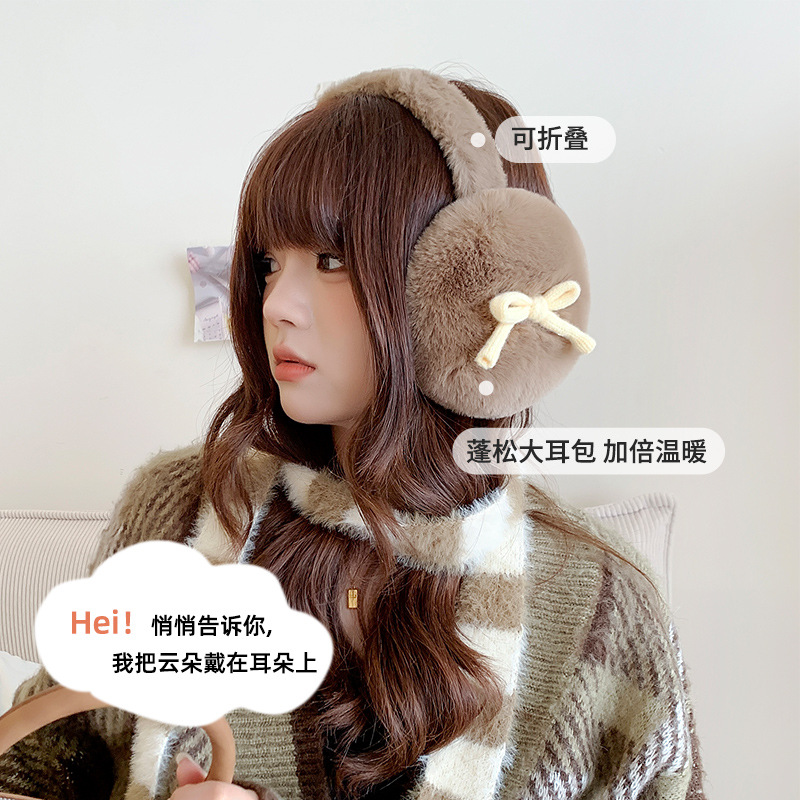 少女心かわいい蝶ネクタイ冬のぬいぐるみ保温耳カバー耳保護自転車学生防寒耳が耳を温めている