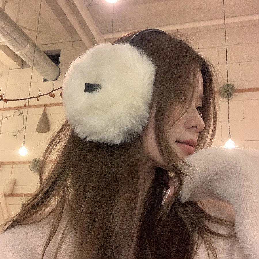 白い毛のふわふわした甘い少女感蝶ネクタイ耳カバー女性冬自転車保温防風厚い耳保護耳暖かい