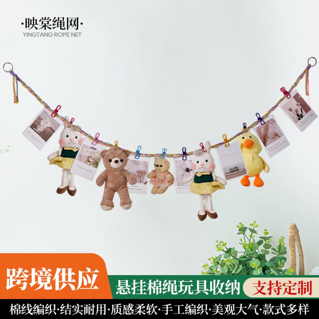 おもちゃ収納編みストラップ部屋綿ロープチェーン飾りクリップ写真背景壁パーティー装飾吊りロープ