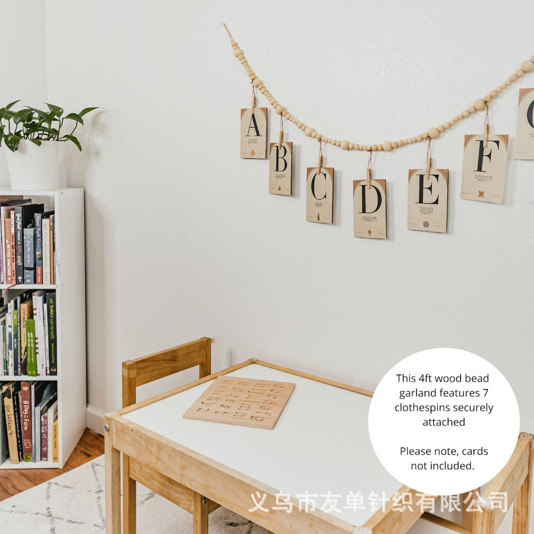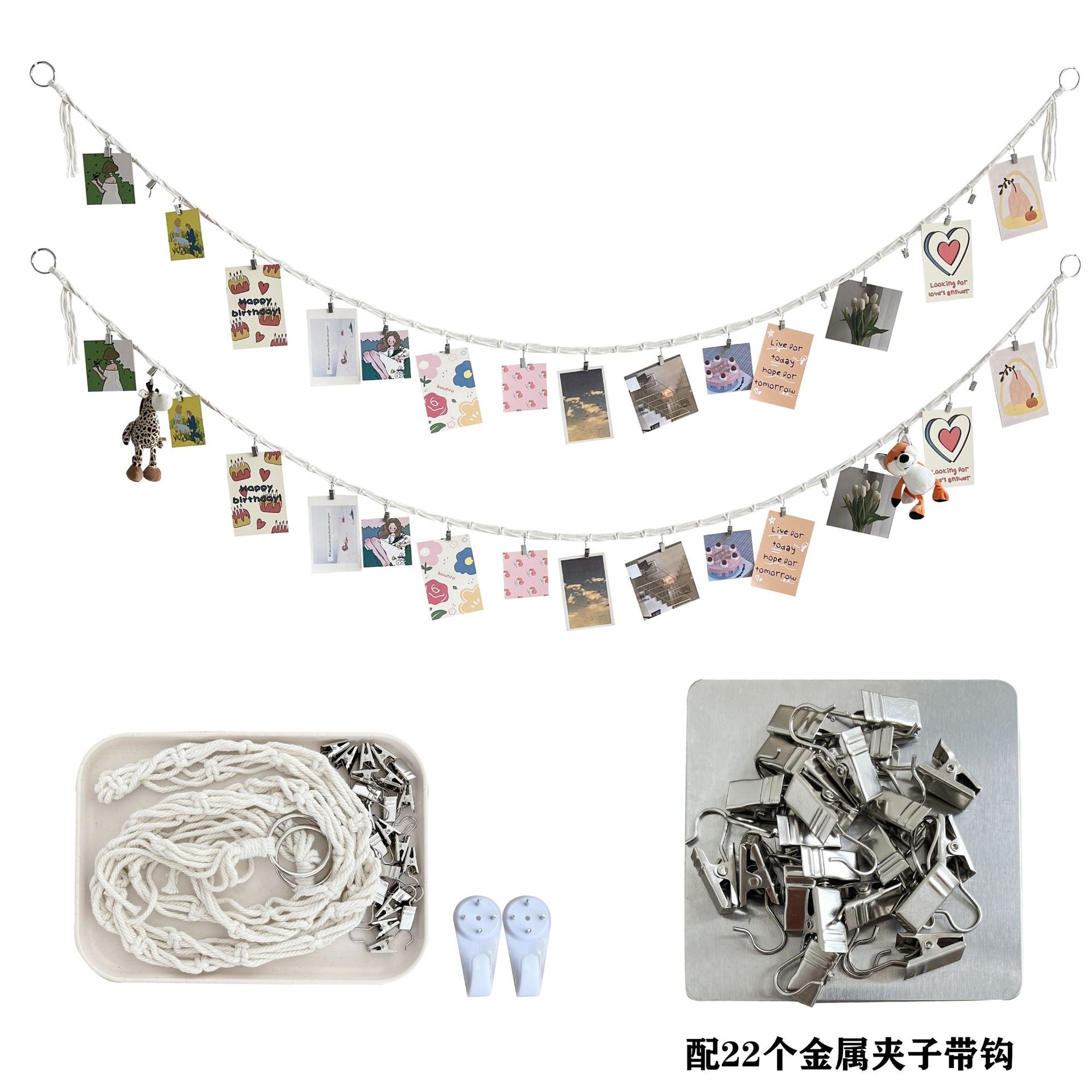 Ins原木色木珠串写真フリンジビーズ串クリップ写真収納吊り写真ホーム装飾ストラップ