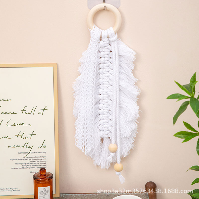 【誉翼オリジナル】純手編み北欧風綿縄フリンジ羽葉タペストリースト飾りブックマーク