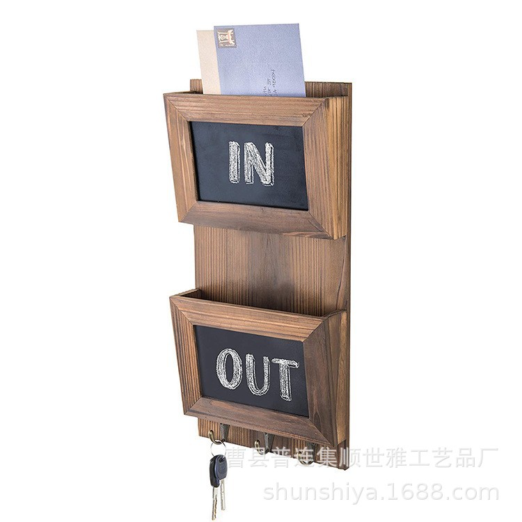 クリエイティブシンプルな二重封筒袋アメリカ壁掛け木製郵便物棚黒板パネル付きフック整理棚