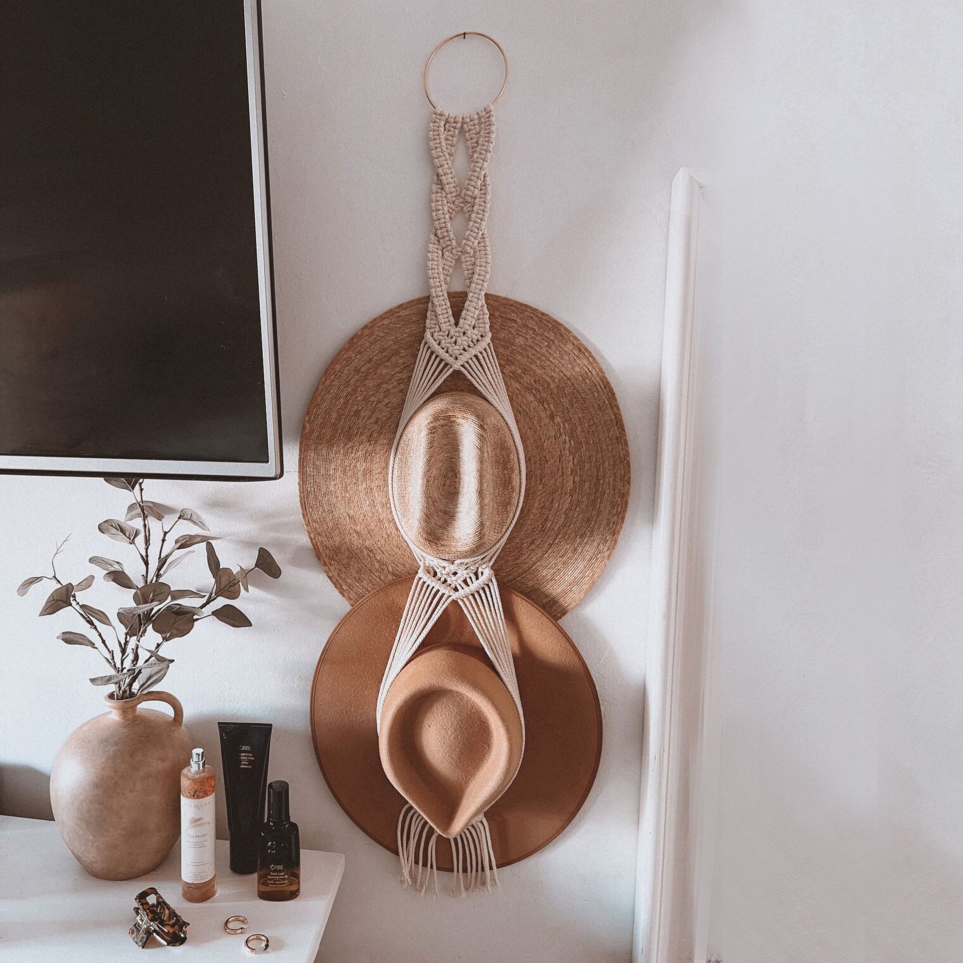 ボヘミアンコットンロープ編み帽子収納棚多層壁掛け収納クリップ掛け帽子タッセル飾りタペストリー