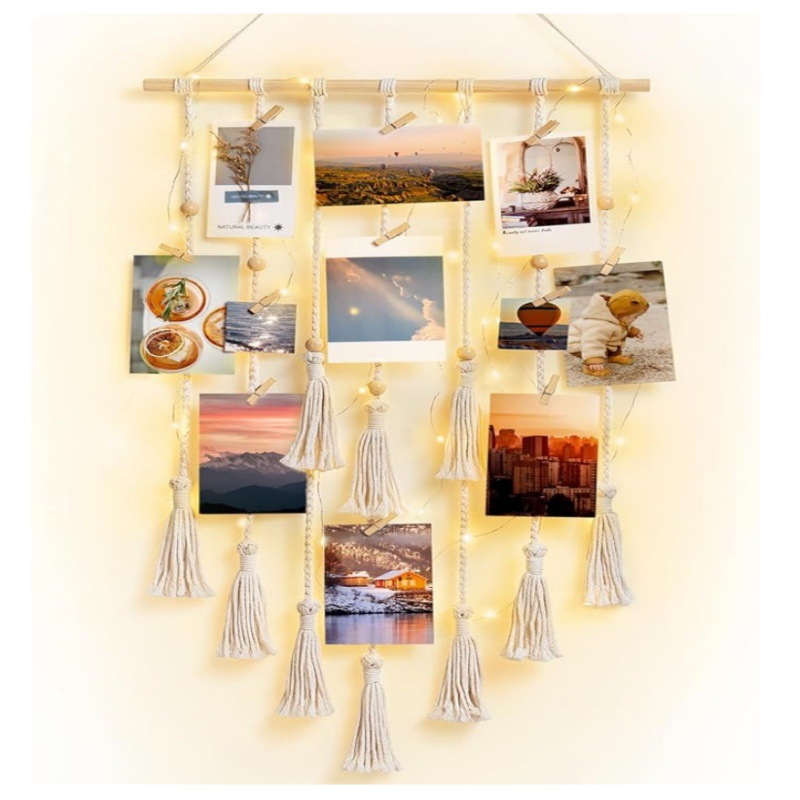 木珠吊り写真展示麻縄原木珠流蘇クリップ写真フォトフレーム収納壁掛け装飾