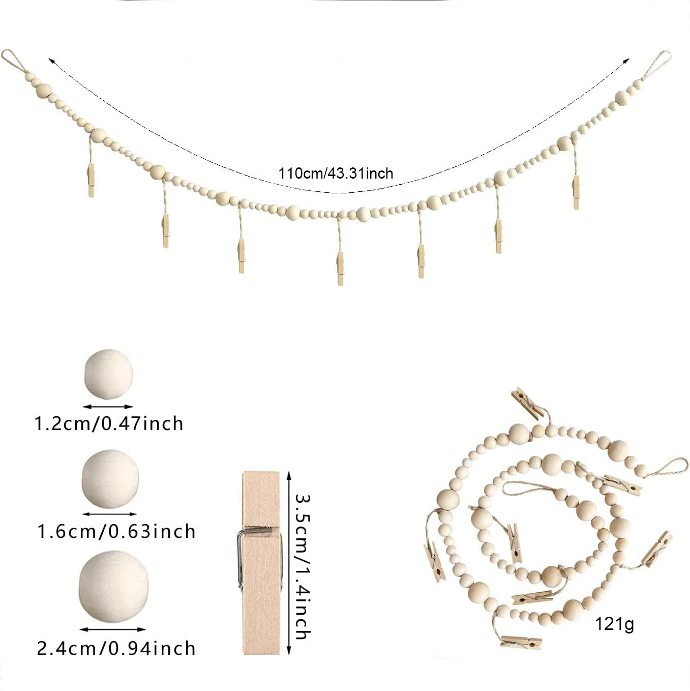 木製ビーズ写真ヘアピン収納写真ディスプレイ木製ビーズ串付き写真収納麻紐ビーズクリップホーム装飾