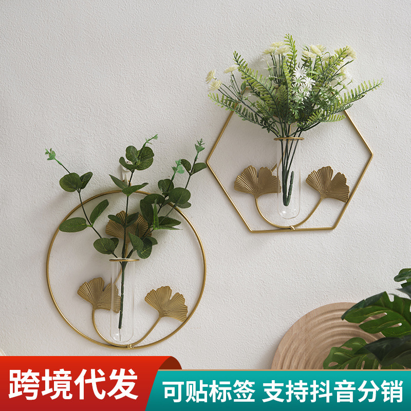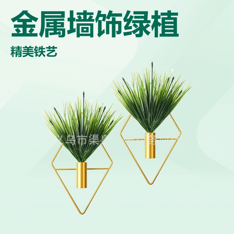 鉄製インスタの壁に乾いた花の花瓶が壁にかけられて壁に飾られています。
