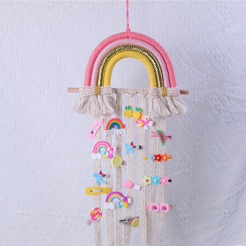 25個の新しい北欧風レインボーウォールハンギング、手編みの子供用ヘアピン収納ウォールデコレーション