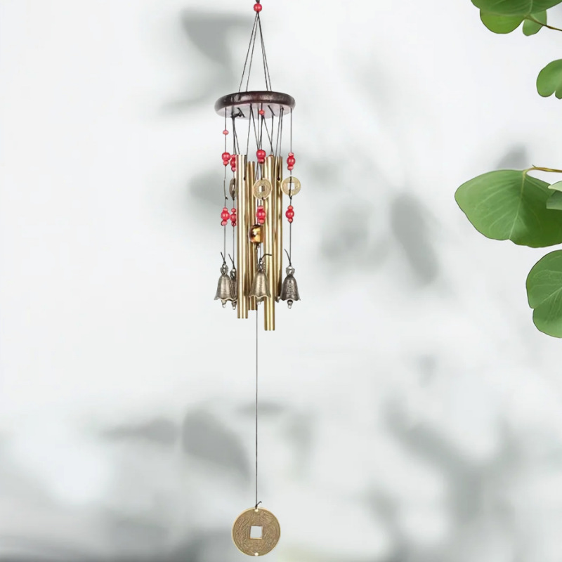 国境を越えてよく売れている4管実木金属古銅招財入宝風鈴家庭装飾庭園装飾国境を越えた卸売り