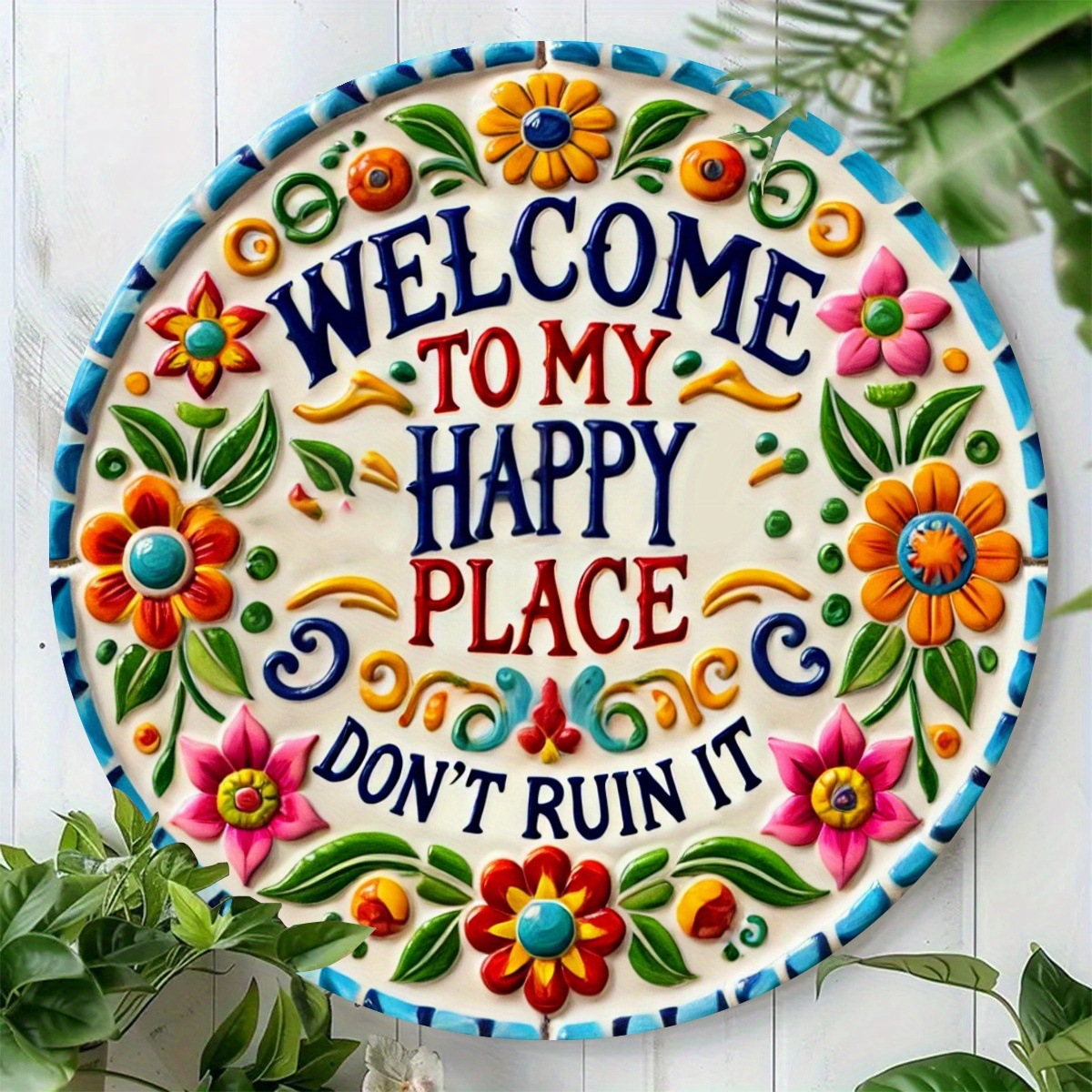 1pc "私の楽しい场所へようこそ" ラウンドアルミ制壁面装饰ロゴ、7.8x7.8インチ