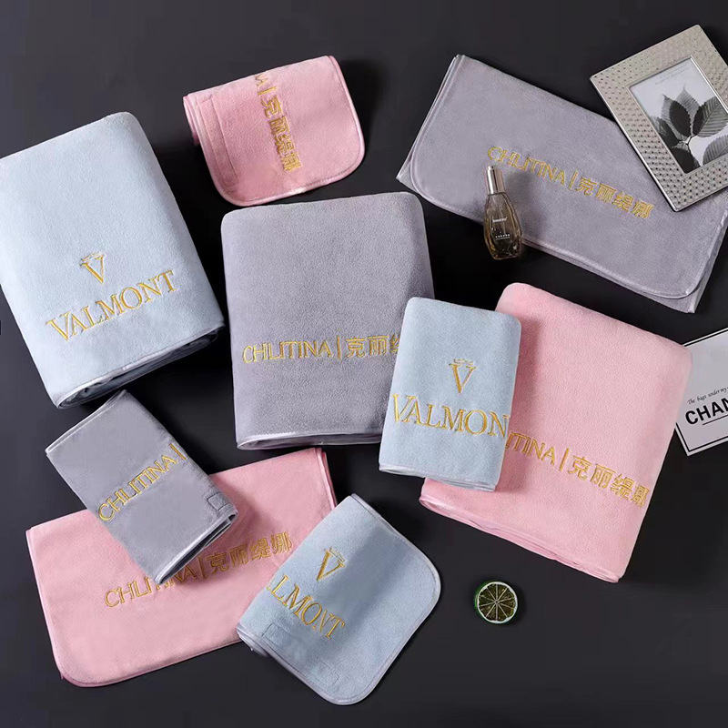 美容院のタオルはロゴの高級な純色のタオルの美容の専用の白い繊維を決めます。