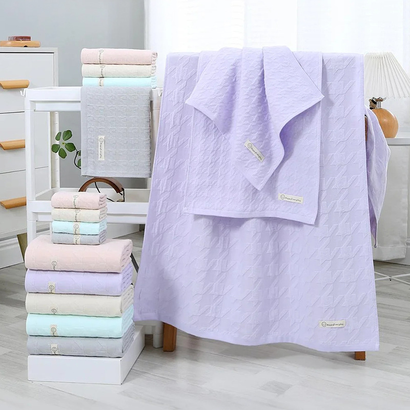クロスボーダー純綿ジャカード中空柄バスタオル外国貿易綿大小バスタオルセット 50*90/70*140