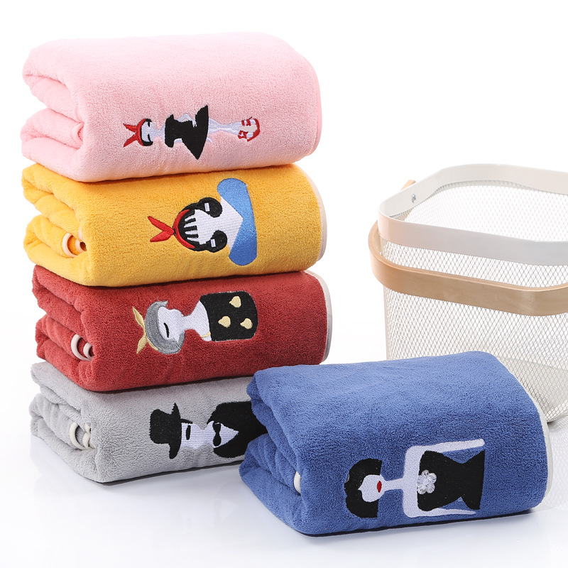 刺繍コーラルベルベットのバスタオル70*140は、吸水した肌の柔らかいプレゼントを厚くして、毛を落とさない家庭用タオルです