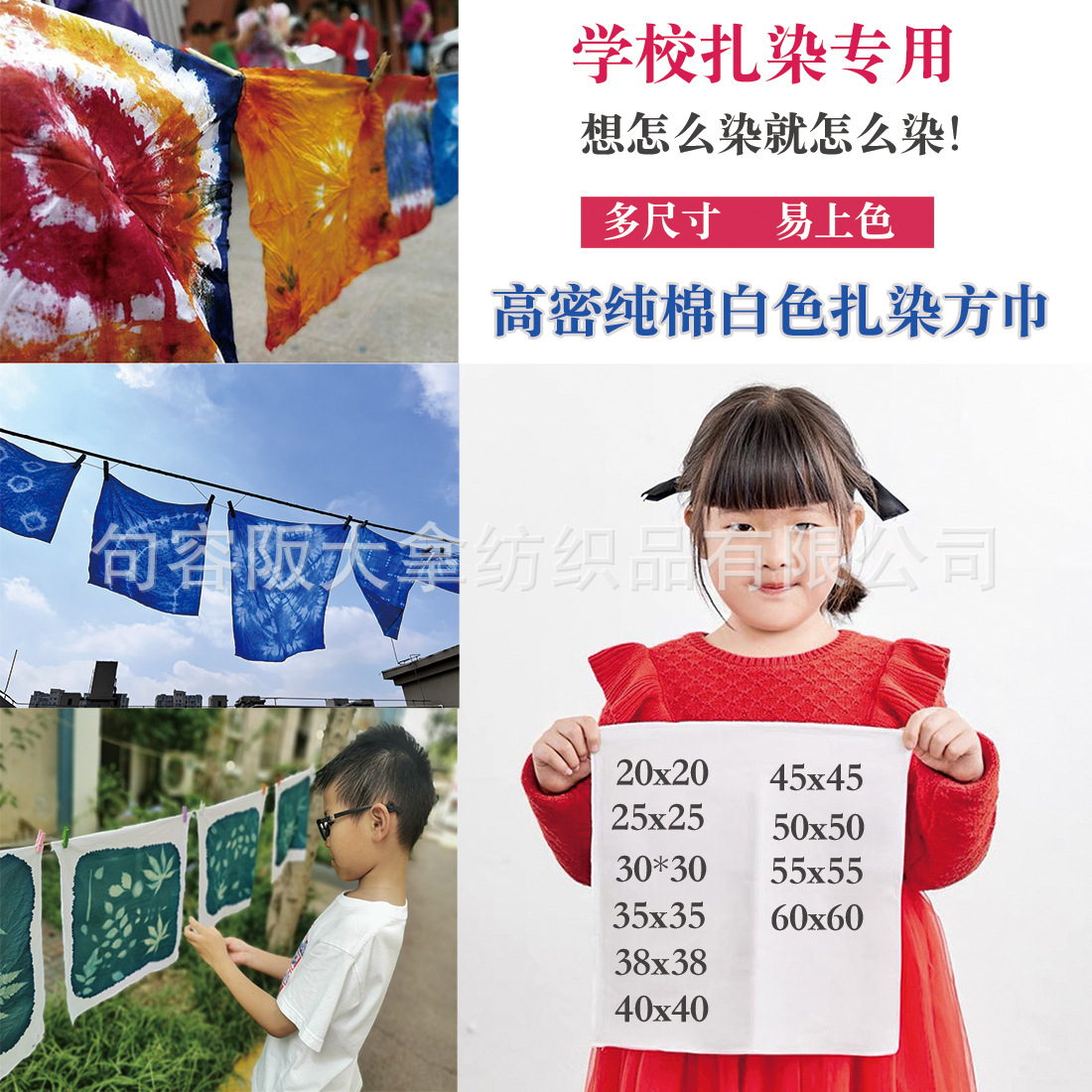 批发 纯棉白色扎染布学生幼儿园手工扎染DIY刺绣拓印白手帕白方巾