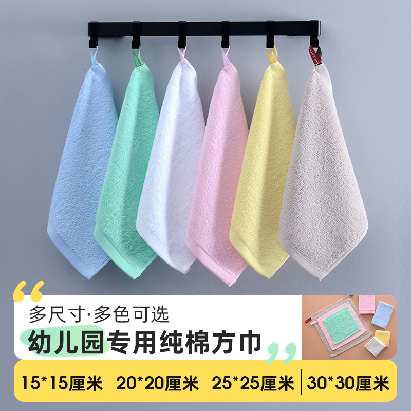 幼稚園の口を拭く白いタオルの卸売りはひものフックを持って顔の手のタオルの純色の多色を拭きます。