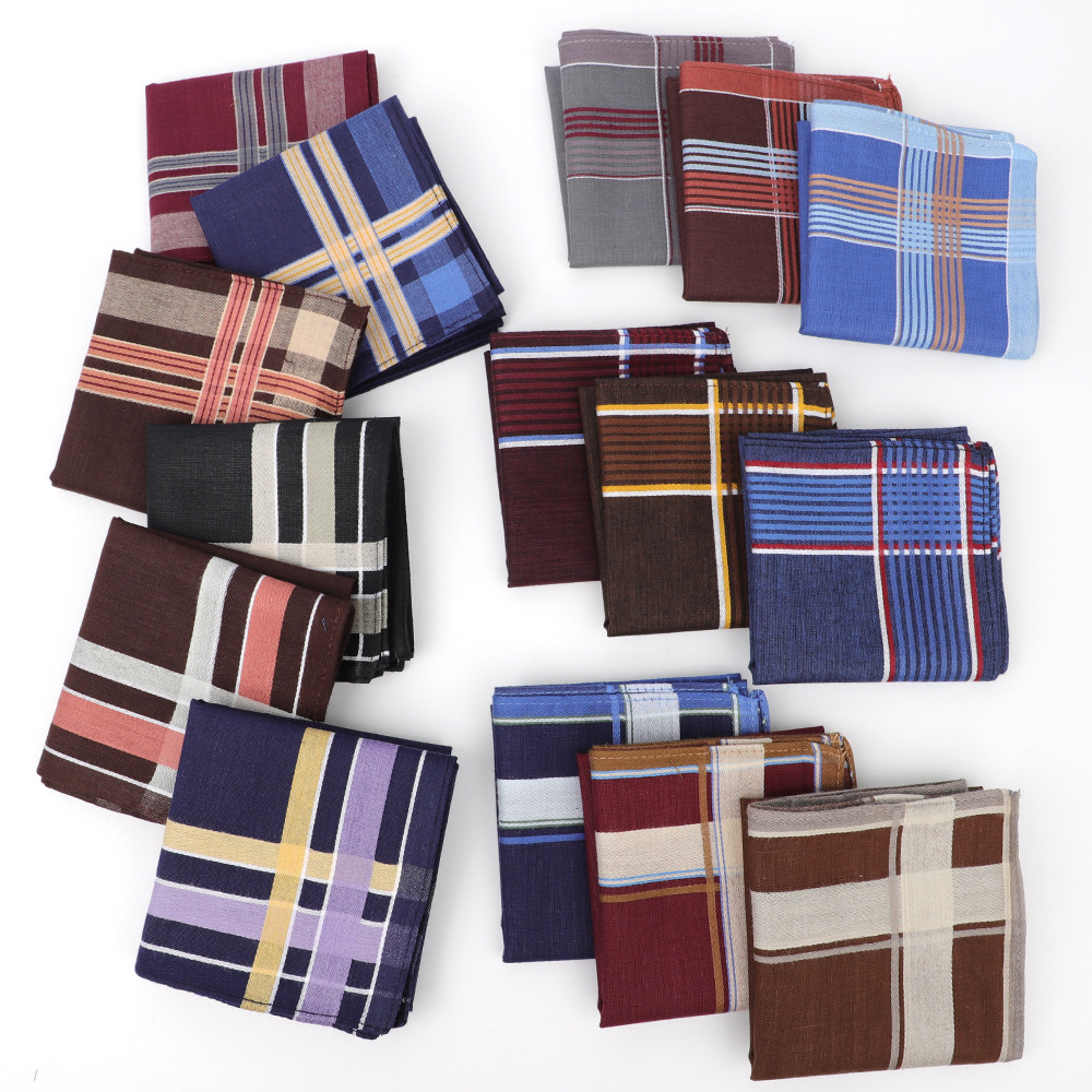 男性の定番ストライプの濃い色の綿ハンカチの古い綿ハンカチのクロスボーダーのポケットタオルのスーツタオル40cm