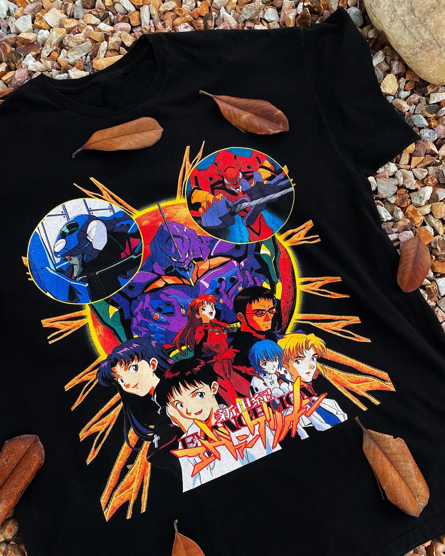 小さい襟元! SoryuAsuka Langley Blacktee明日の香りの熱いアニメの街頭の半袖のtシャツ