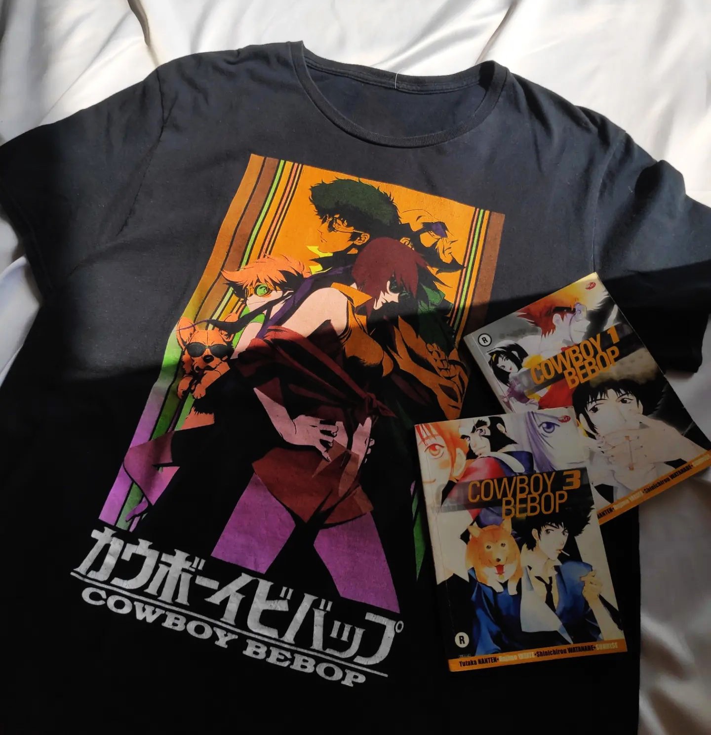小さい襟元! Cowboy Bebop Anime blackteeスターデニム热血漫画半袖tシャツ