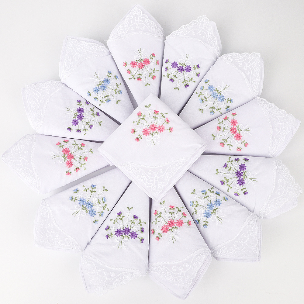 60本精練綿28cm白地レース刺繍小さなハンカチ綿綿柔らかい刺繍女性の手の花