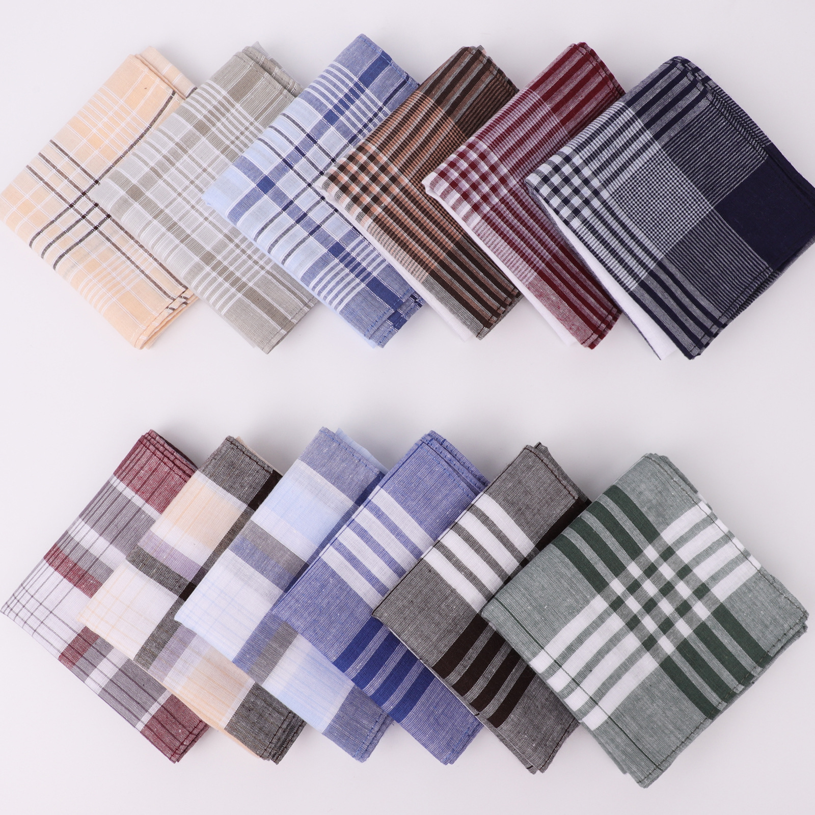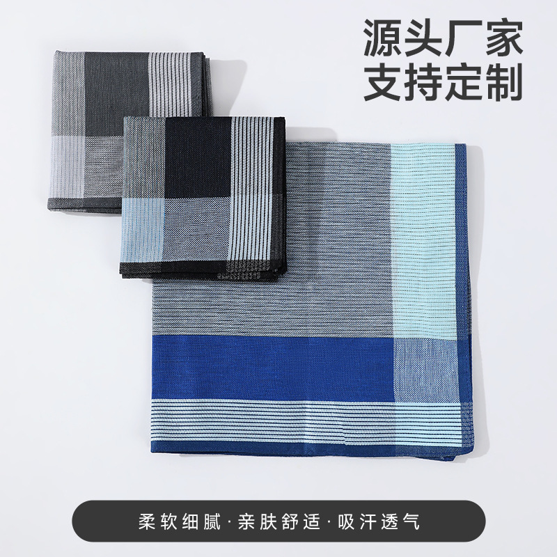 40cm 色織りストライプチェック柄ハンカチ綿小さな正方形タオルクラシックメンズ装飾ハンカチ汗吸収タオルハンドタオル