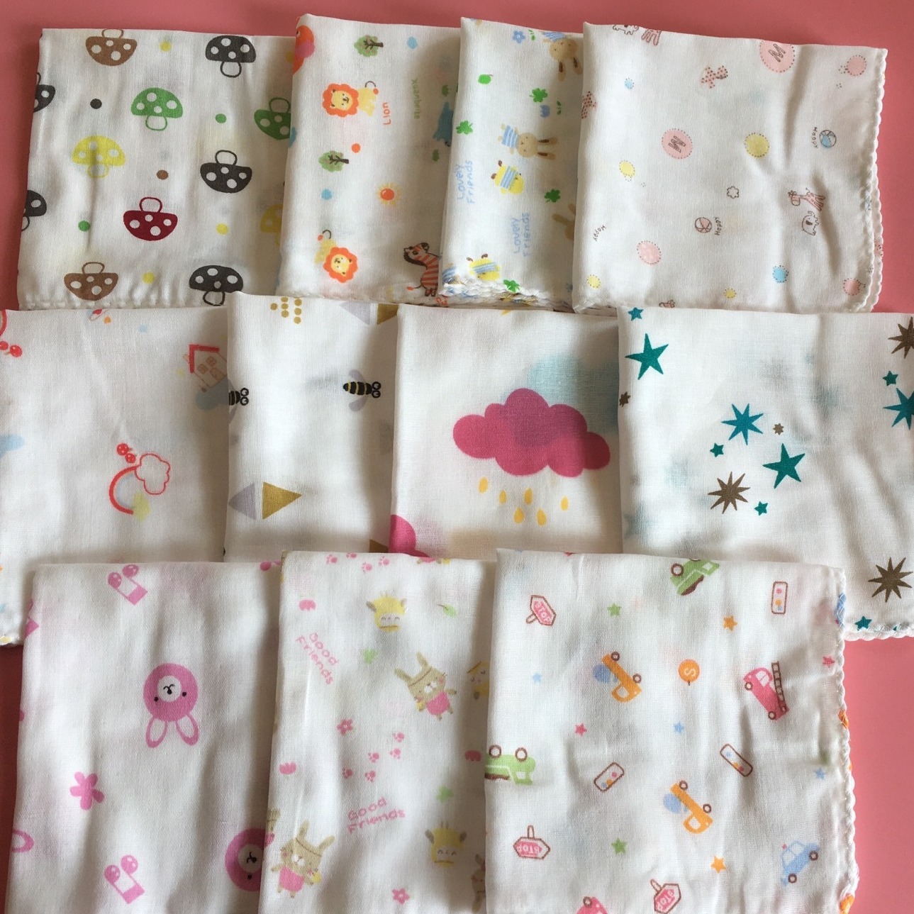 西松屋の高密な10本は二重ガーゼのハンカチの綿の赤ちゃんのよだれタオルを入れて柔らかくて快適な子供の小さい方のタオルです。