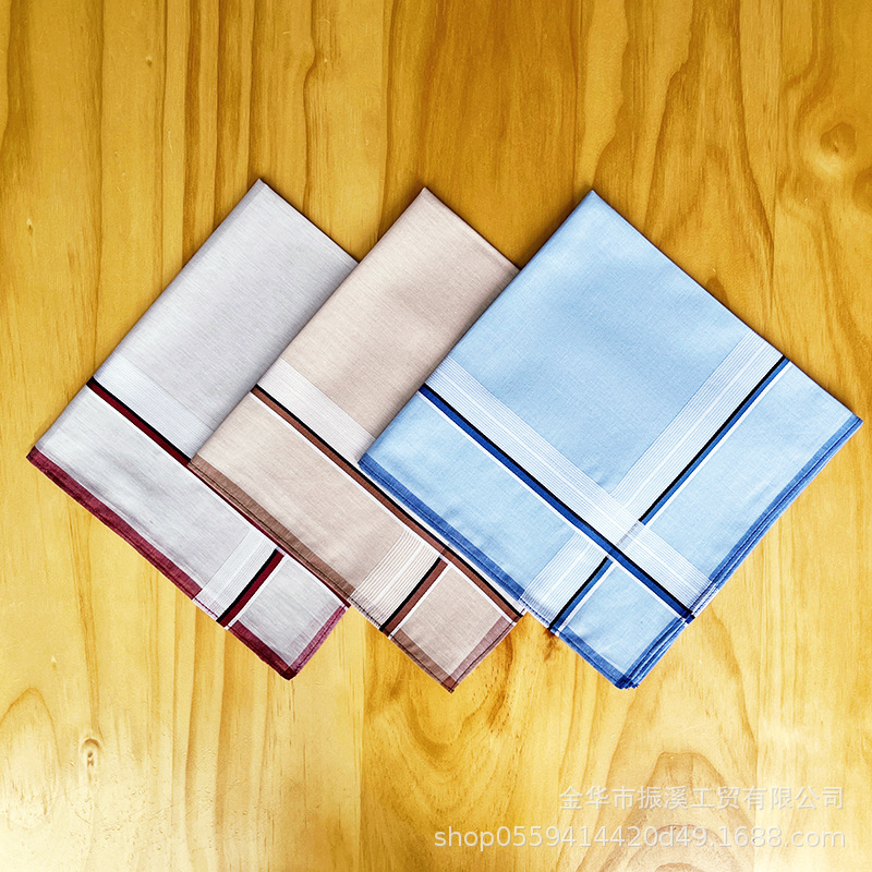43cm綿100% メンズビジネス色織ハンカチ高級サテンのポケットタオル純綿男性用汗拭きタオル
