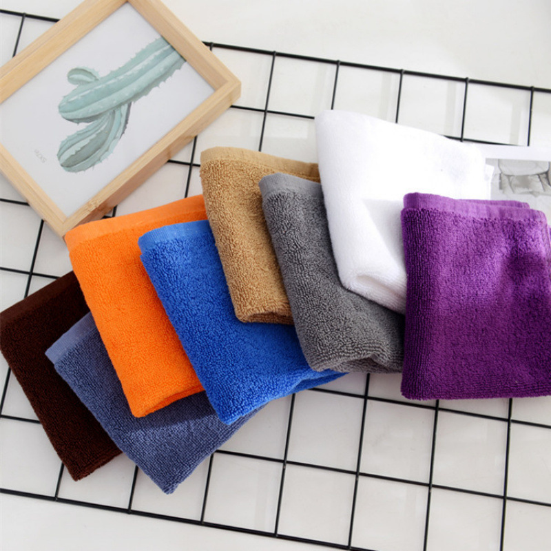 ホテルのホテルの白いタオルの濃い色の小さい方のタオルのコーヒー色の青いタオルの四方は小さいタオルを厚くします。