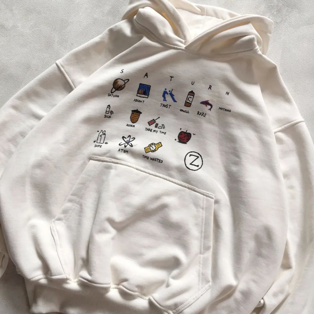 WHO CAREレトロ大百科高街美潮レトロ大サイズoversize青春流行フード付きスウェット