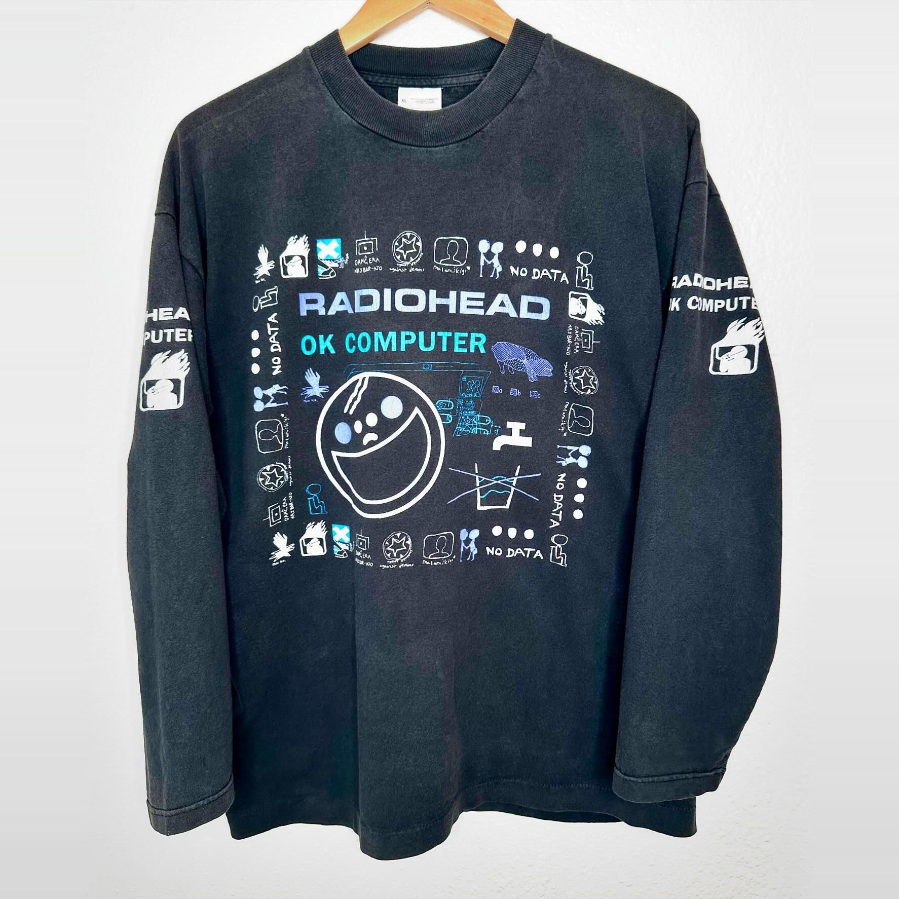WHO CAREレトロ大百科流行中性カジュアルoversize長袖tシャツ古着レトロ純綿