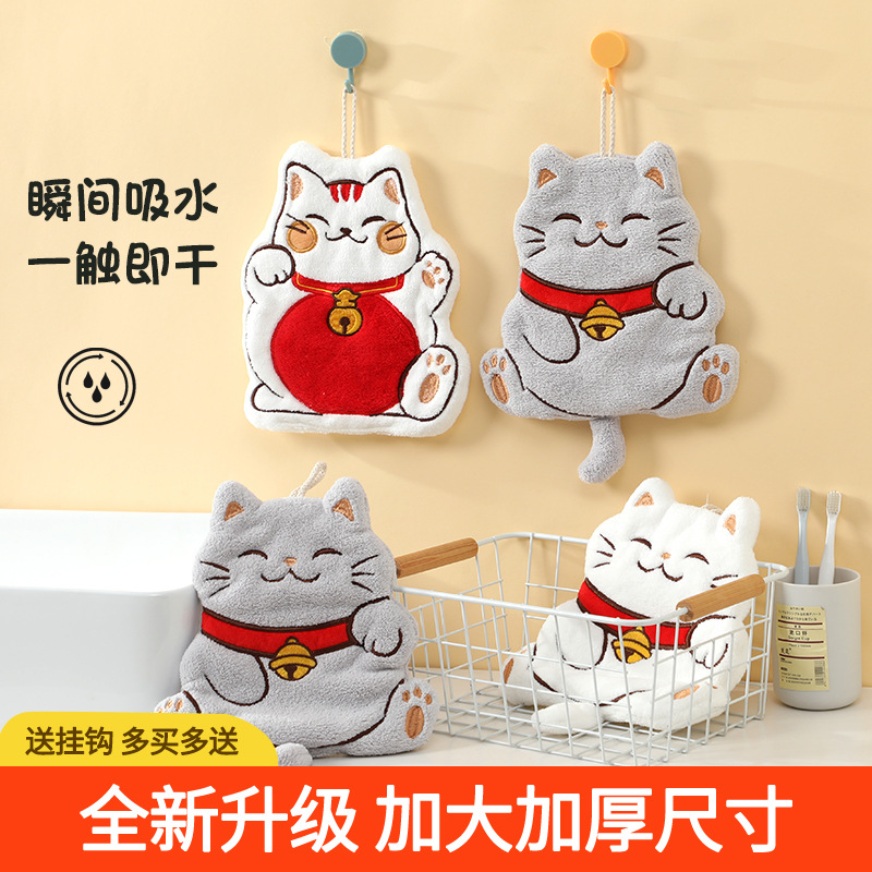 年モデルのサンゴの毛の招き猫は手ぬぐいを拭います。柔らかくて吸水が可愛い刺繍は雑巾をかけることができます。