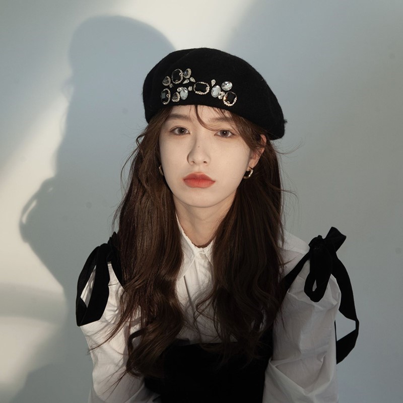 セオリーamong張元英は韓国版のドリルのベレー帽の女性春秋ウールです。