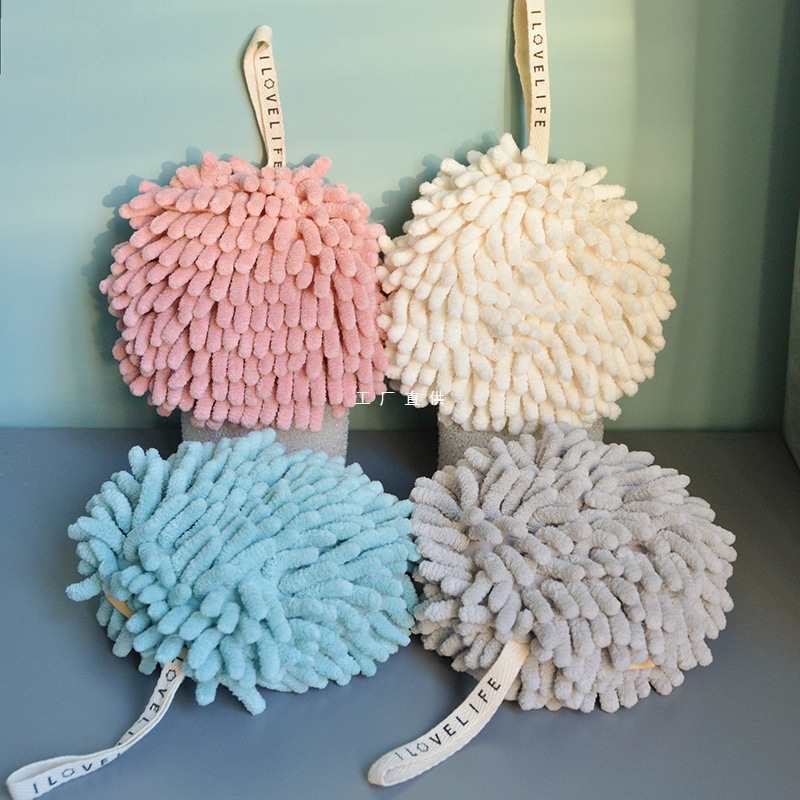 シェニール煙粉カップル拭きハンドボール毛むくじゃら吸水速乾タオル成人家庭用柔らかいストラップ拭きタオル