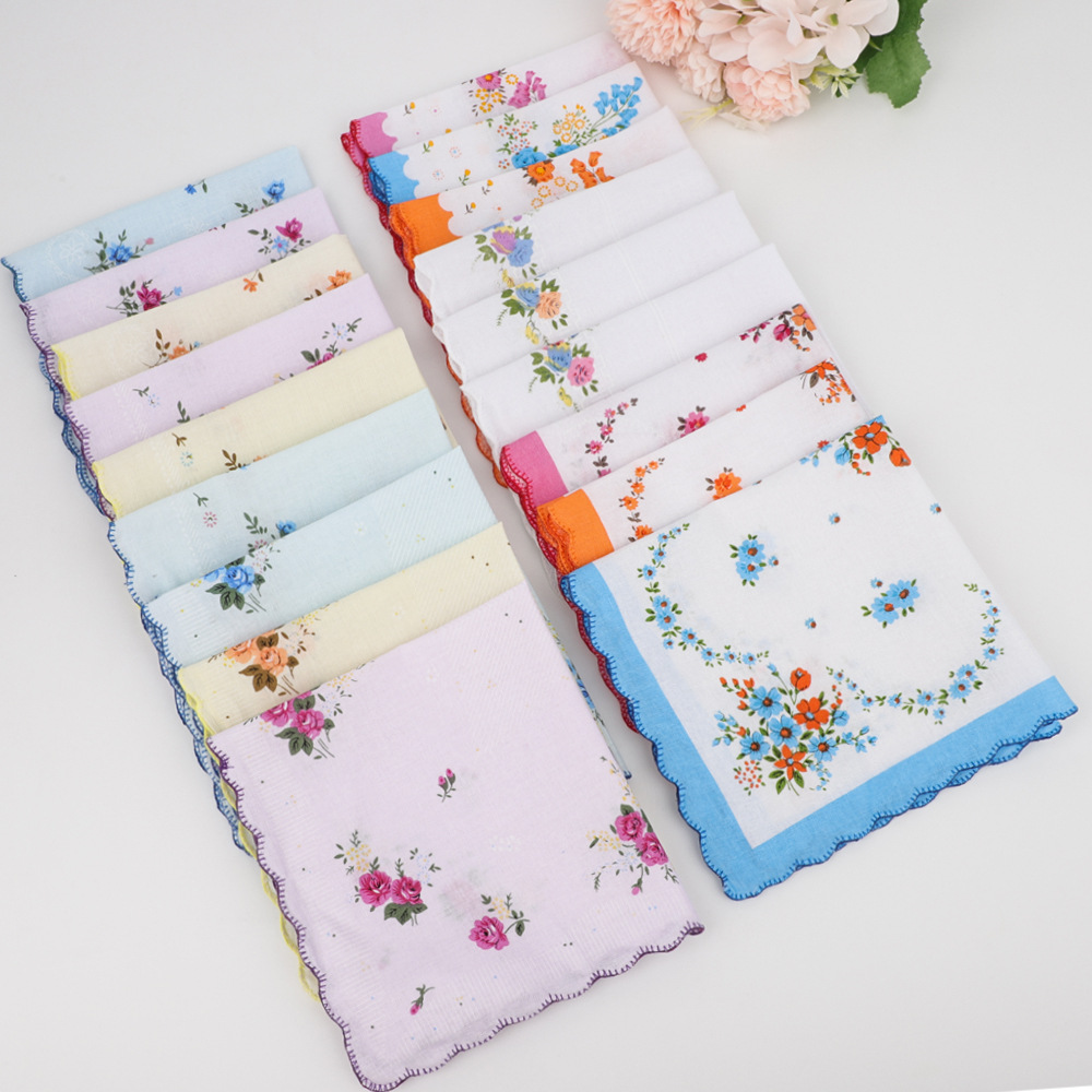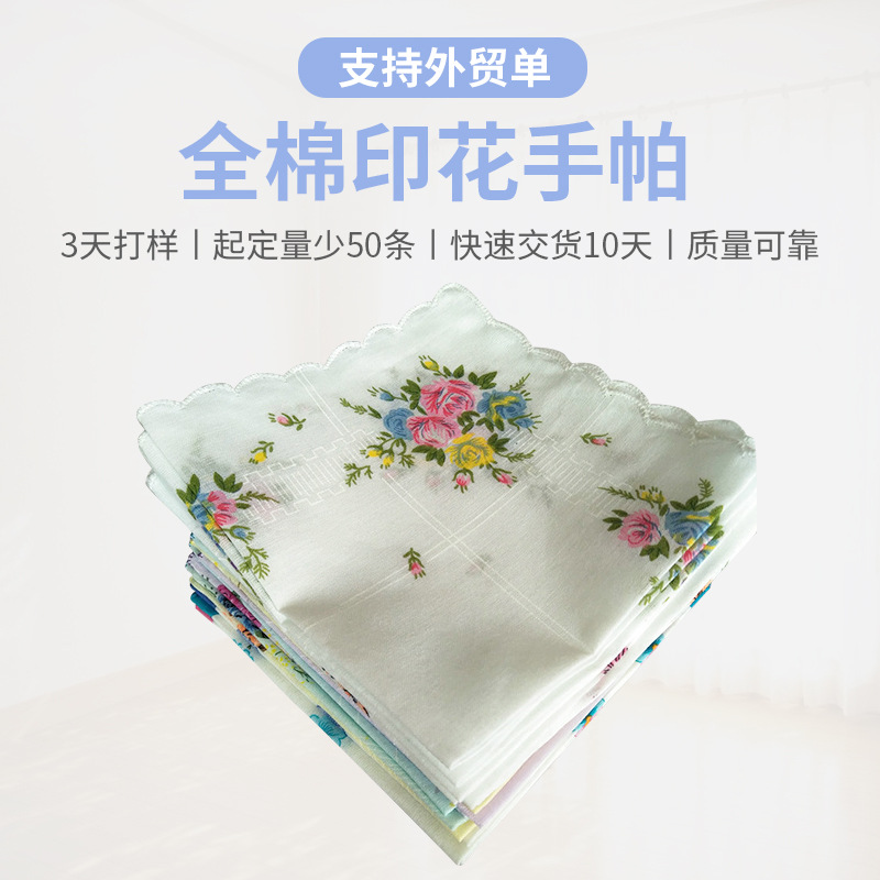 メーカー卸売り全綿女性ハンカチプリント女性ハンカチ復古吸汗爽やかなハンカチ女性プリント