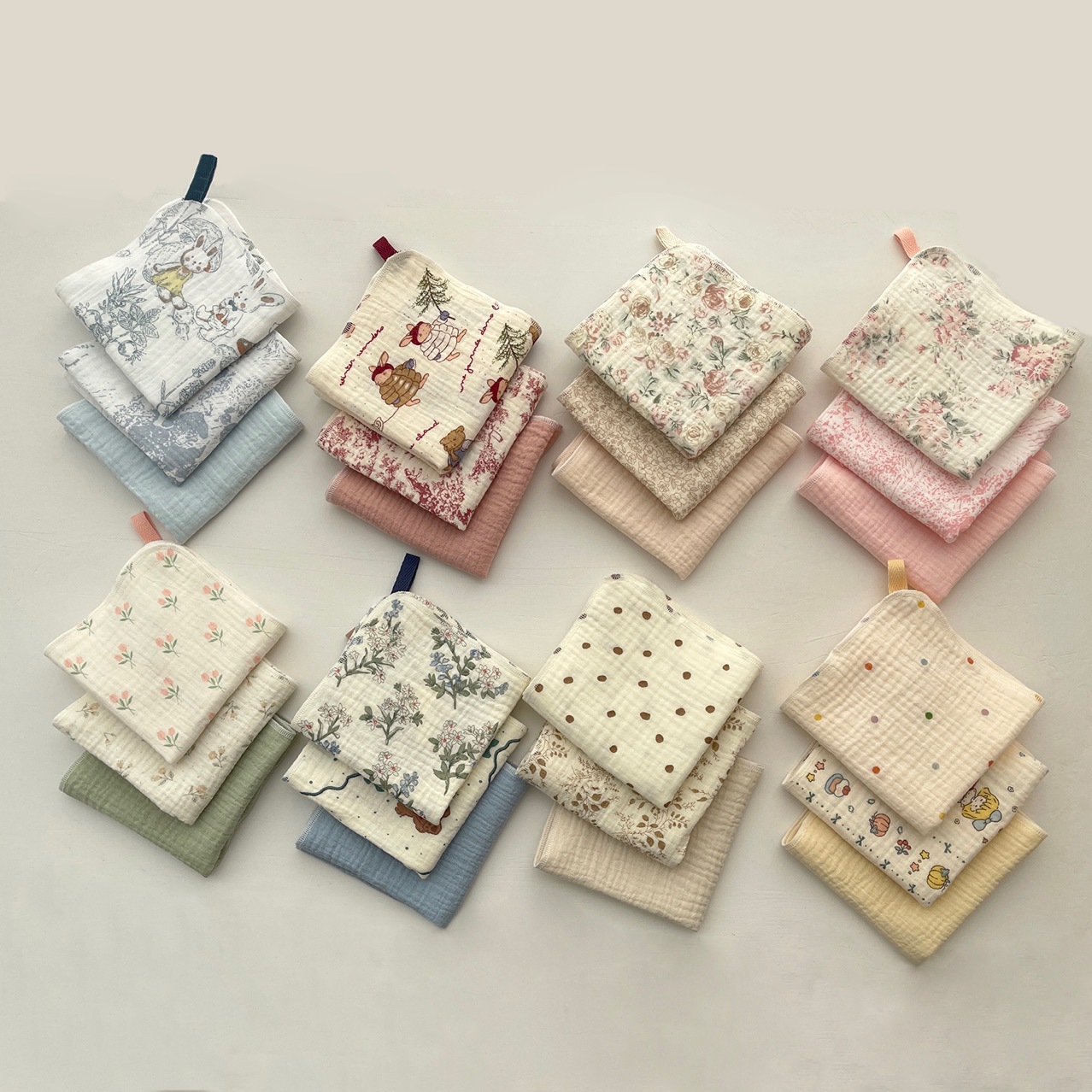 国境を越えた売れ筋のInsプリントコットンガーゼ子供用フェイスタオルハンカチ