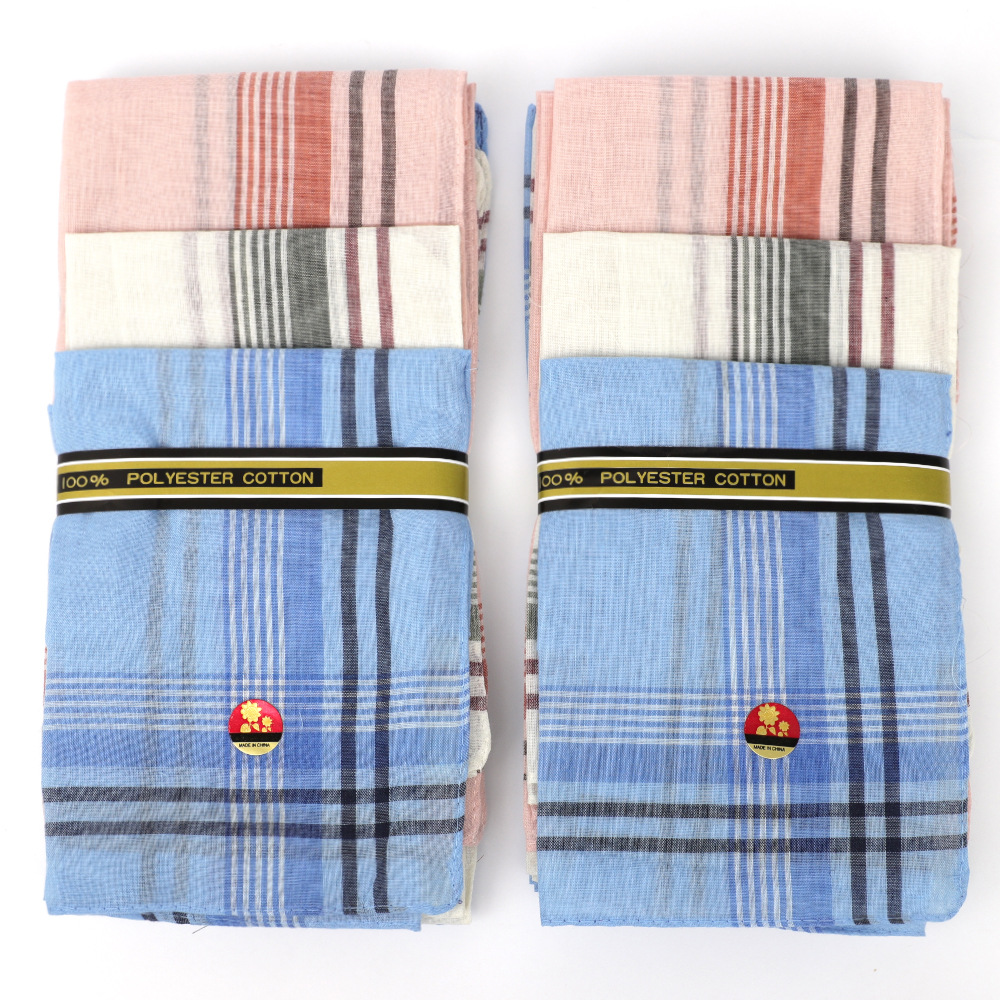 ポリエステル綿チェック柄ストライプハンカチ、織りストライプハンカチ、ライトカラーのメンズ小さな正方形ハンカチ、昔ながらのクラシックハンカチ、国境を越えて人気の商品