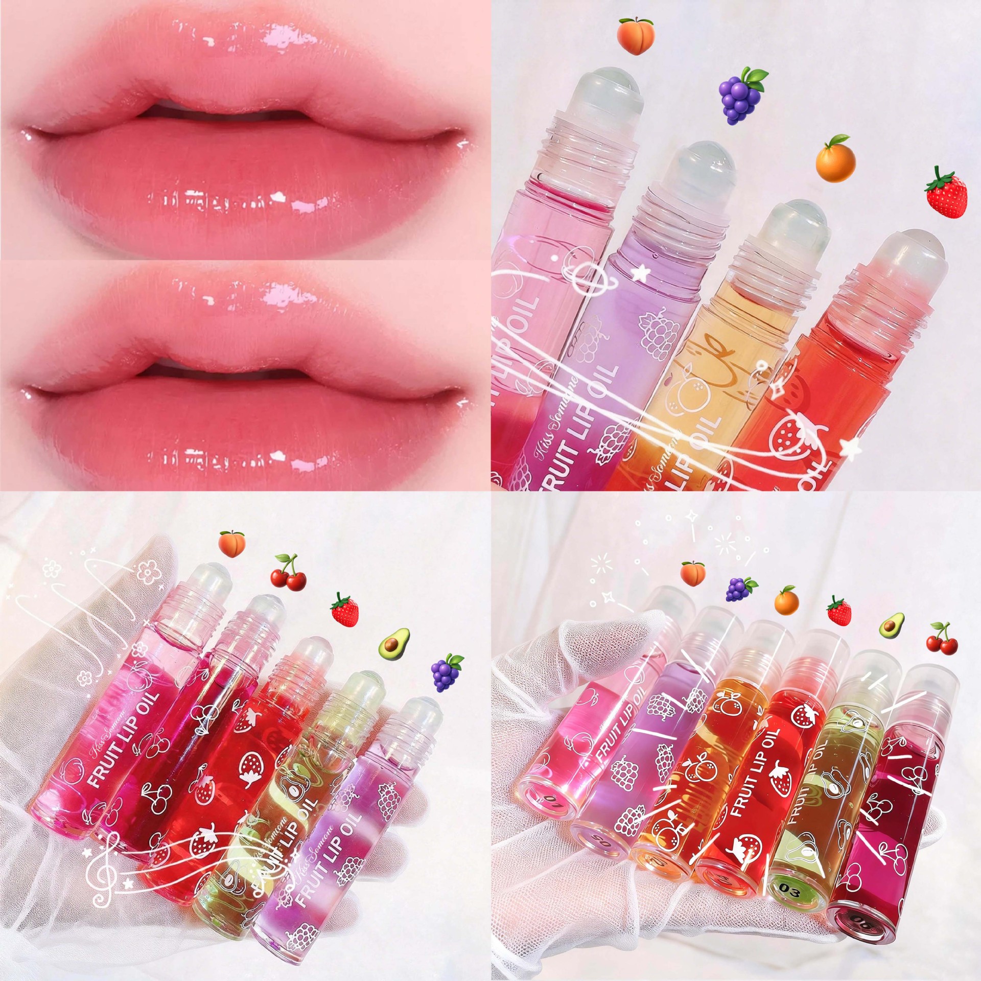 越境走珠唇油保湿潤いリップクリーム液体補水ボール口油無色透明果物牛油果唇油