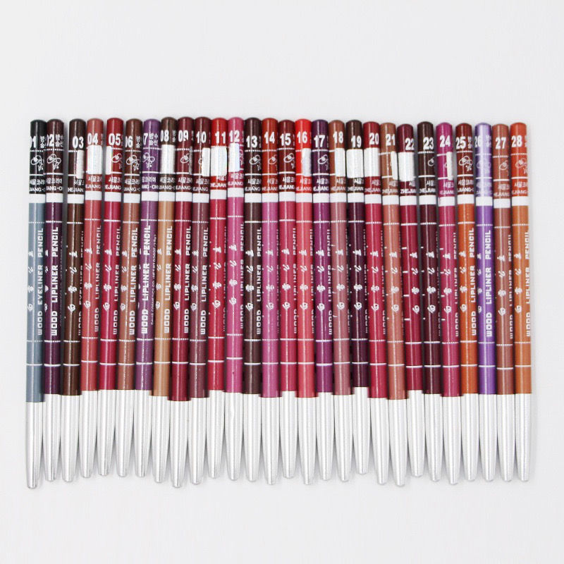 クロスボーダー速売通人気影唇線筆小ロット黒薔薇裸色茶色赤色眉筆アイライナー28色卸売り