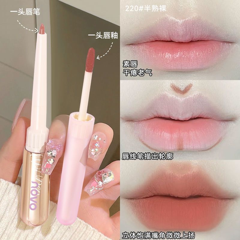 NOVO 両頭リップライナーが唇の形を輪郭づけ、色付きのミストダブル効果リップグレーズ口紅マットヌードカラー美白