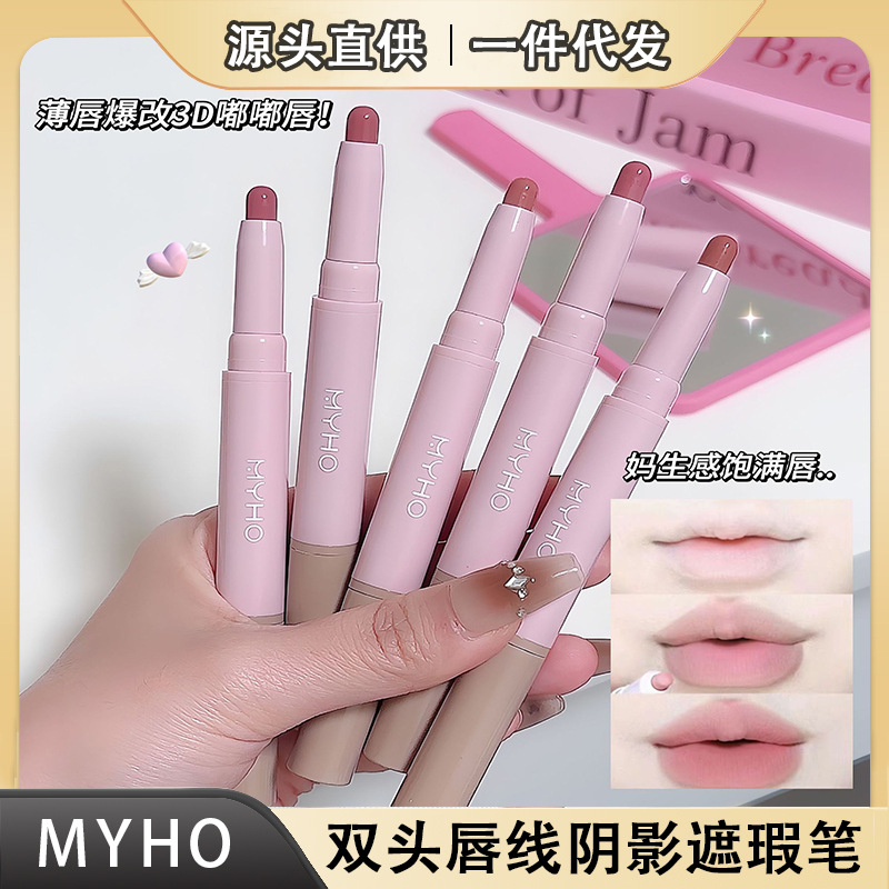MYHOの両頭の唇の線の筆は唇の形の霧の面のつや消しの学生を描き出します。