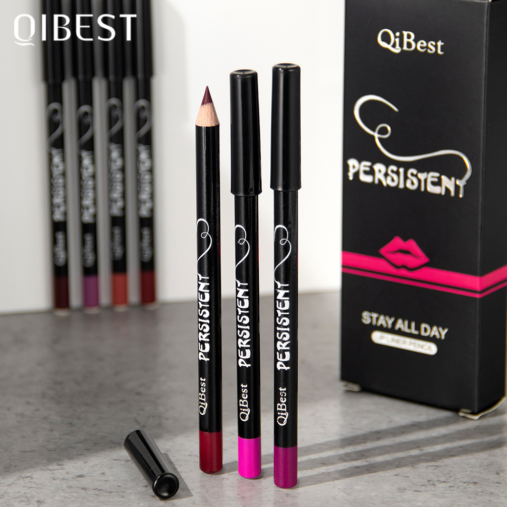QIBESTファッション黒棒防水12色口紅はカップをつけずに色をつけやすい自然立体唇線ペンのメーキャップ
