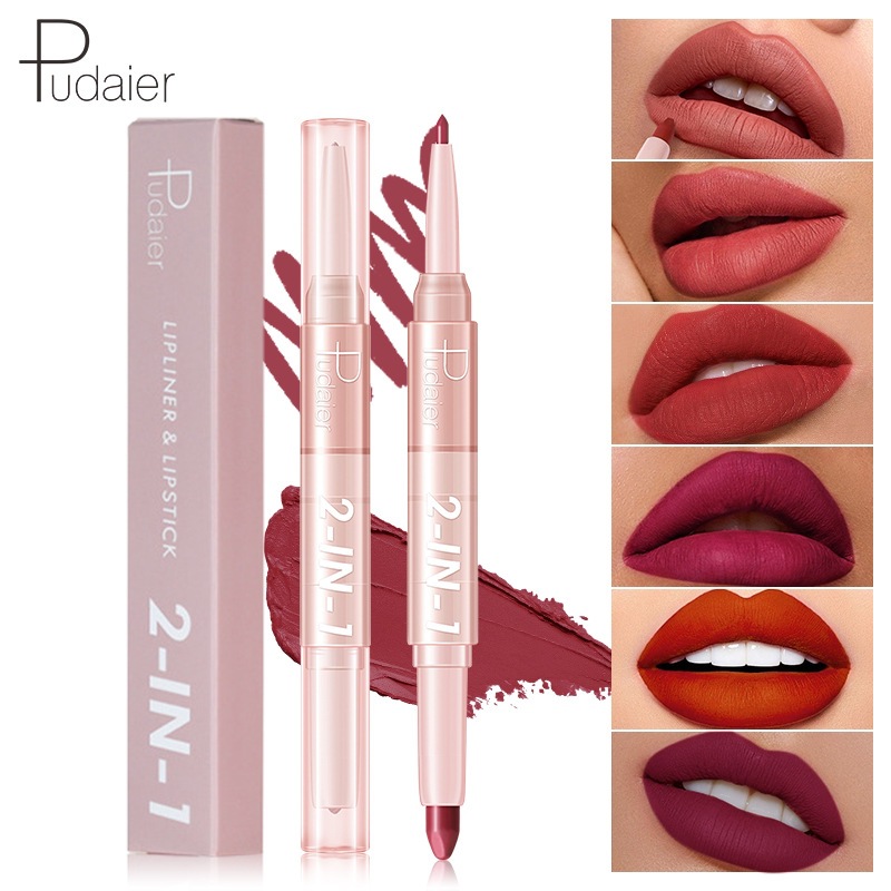 Pudaier ヨーロッパとアメリカのマルチカラー口紅リップペンシルアマゾン貿易マット非退色双頭口紅リップライナー