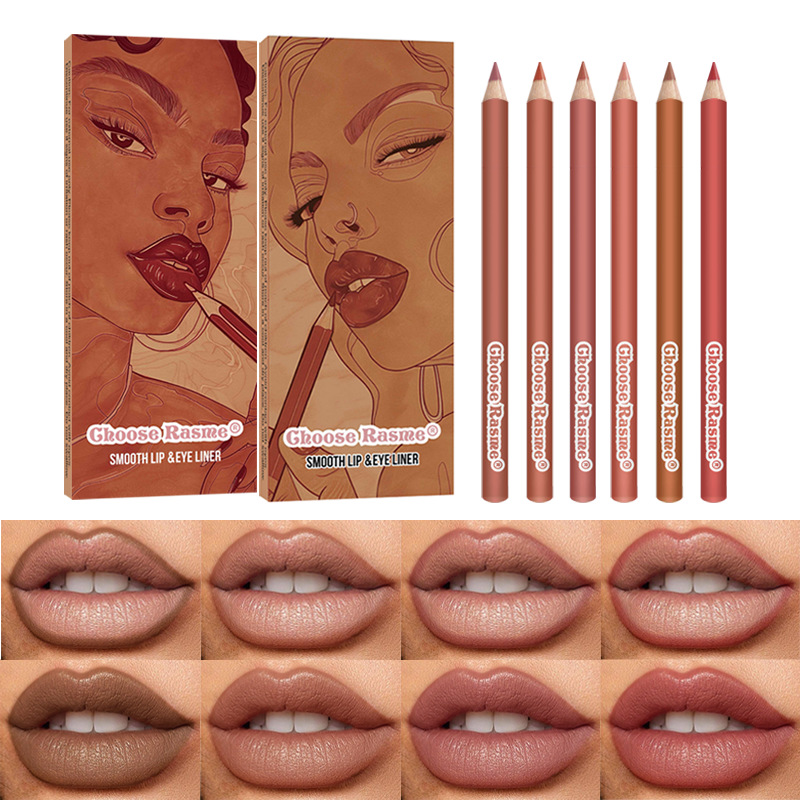 国境を越えた6本の裸色リップペン木質防水自然マット糸が色あせない口紅ペンセットの女性