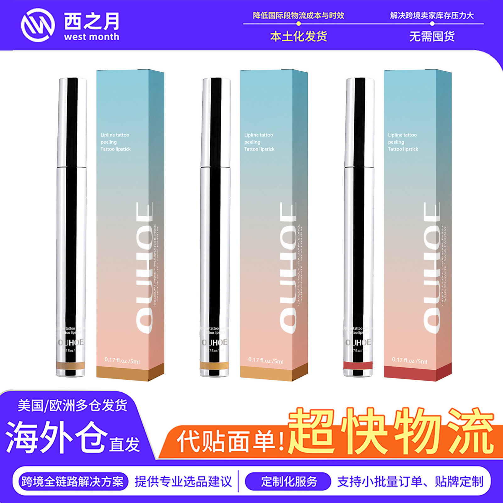 OUHOE剥離式唇線ペン唇線が豊かで、唇の色が化粧を脱いでいないリップ線のタトゥーを剥ぎ取っています。