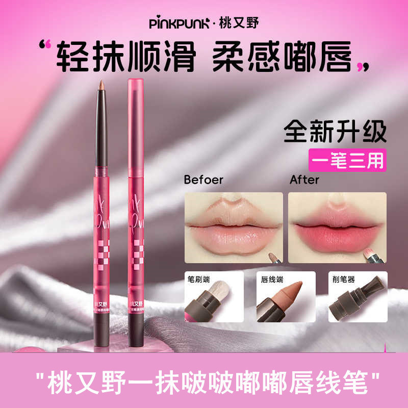 桃又野唇線筆豊唇裸色マット低飽和描唇唇ブラシが滑らかな口紅携帯服